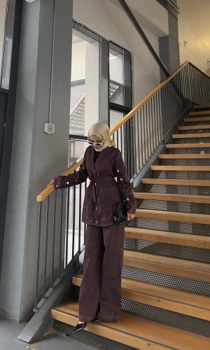 A kalite kumaştan üretilen, zarif plise detaylı eteğiyle modern bir duruş sergileyen bu takım, özel günlerinizden günlük şıklığınıza..